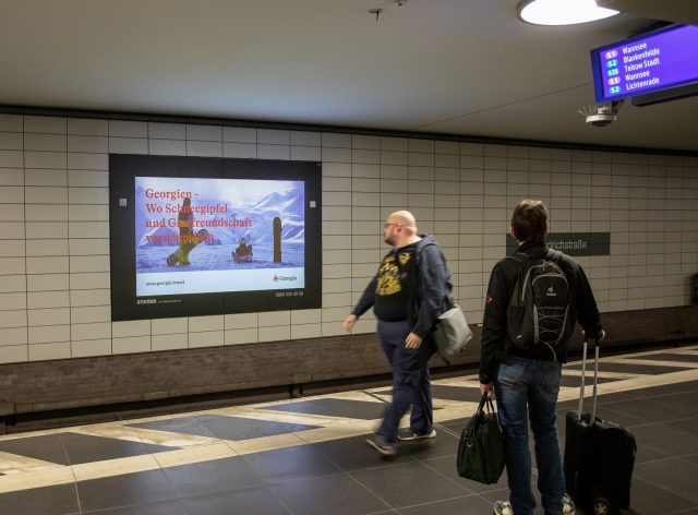 ვიდეო რეკლამის პარალელურად გერმანიის დიდ ქალაქებში, მთავარ მოედნებსა და ცენტრალურგამზირებზე საქართველოს ზამთრის კურორტებისა დაქვეყნის ტურისტული პროდუქტების შესახებსარეკლამო ბანერებია განთავსებული.