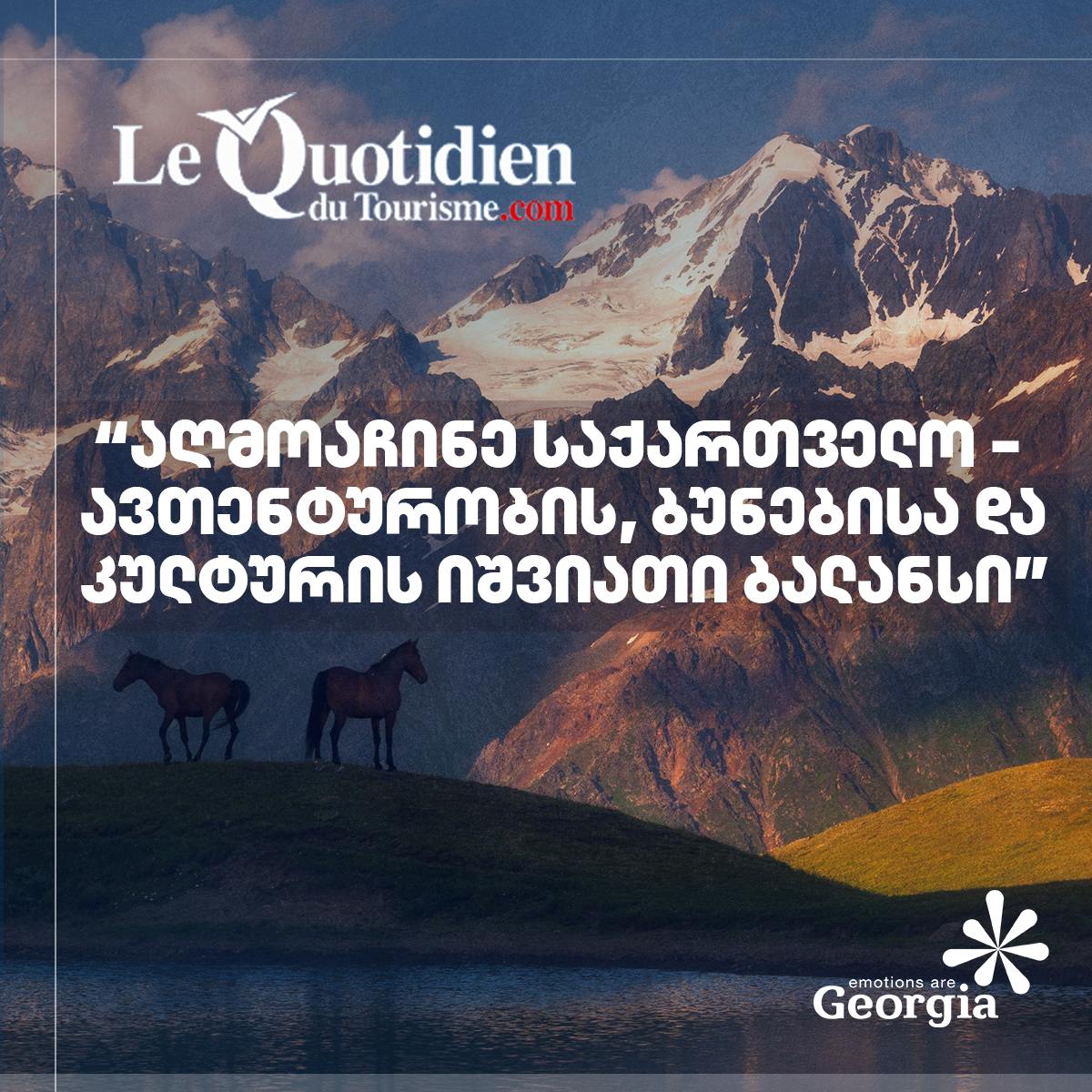 „საქართველოში სტუმარი ღვთისგან გამოგზავნილია – ეს ადგილობრივი ანდაზა საუკეთესოდ ასახავს ამ ქვეყნის სულს. კავკასიონის მთებსა და შავ ზღვას შორის მოქცეული საქართველო, ევროპისა და აზიის საზღვარზე მდებარეობს და თავისი ხელუხლებელი ბუნებით იზიდავს იმ მოგზაურებს, ვინც ახალი თავგადასავლების, შთამბეჭდავი პეიზაჟებისა და ავთენტური გამოცდილებების ძიებაში არიან“, – წერს Le Quotidien Du Tourisme.