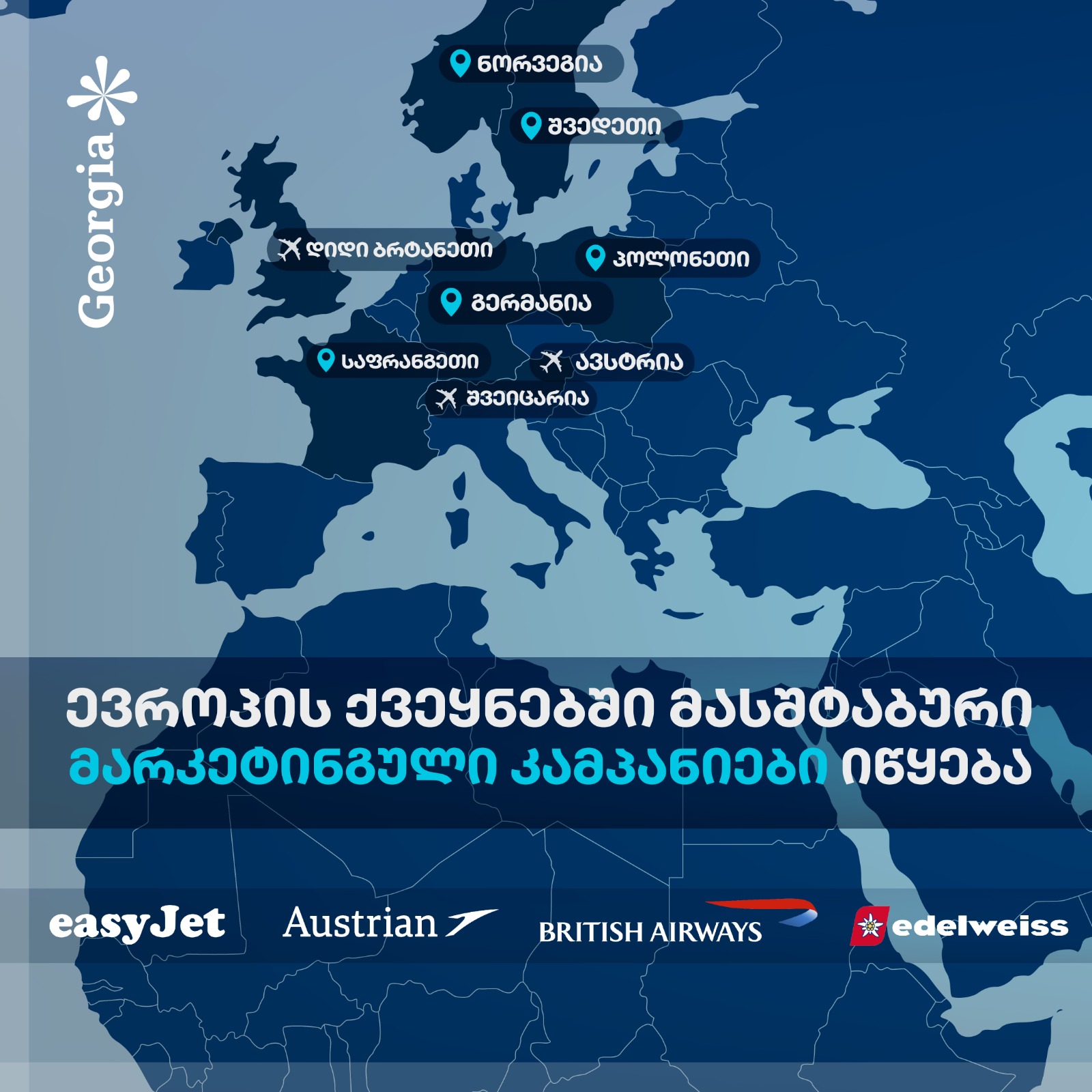 მარკეტინგული კამპანია დიდი ბრიტანეთის, გერმანიის, ავსტრიის, საფრანგეთის, შვეიცარიის, პოლონეთის, ნორვეგიისა და შვედეთის ტურისტულ ბაზრებს მოიცავს.