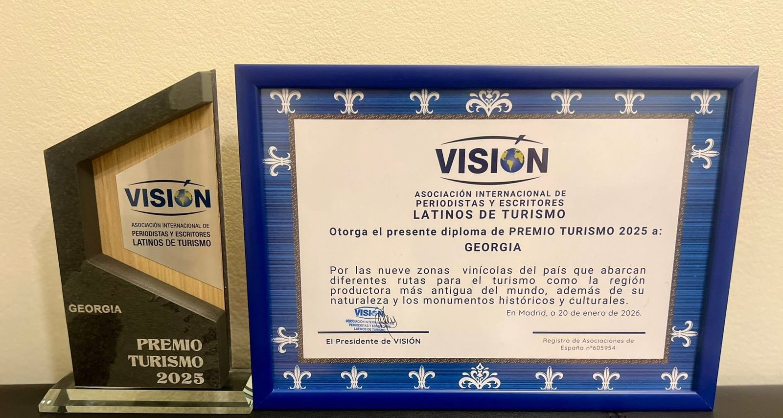 ესპანურენოვანი ჟურნალისტებისა და ტურიზმის სფეროს მწერლების საერთაშორისო ასოციაციამ Vision საქართველო 2025 წლის საუკეთესო ტურისტულ ქვეყნად დაასახელა. დაჯილდოების ცერემონიალი ესპანეთის დედაქალაქ მადრიდში გაიმართა.