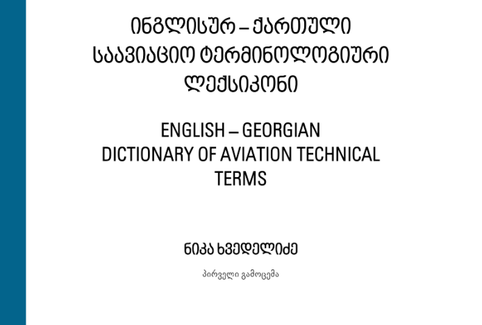სამოქალაქო ავიაციის დარგის ექსპერტისა და ინჟინერის, ნიკა ხვედელიძის მრავალთვიანი შრომის შედეგად, შეიქმნა ინგლისურ-ქართული საავიაციო ტერმინოლოგიური ლექსიკონი. ეს მნიშვნელოვანი ნაშრომი უკვე ხელმისაწვდომია ელექტრონულად და მასზე წვდომა ყველა მსურველს შეუძლია.