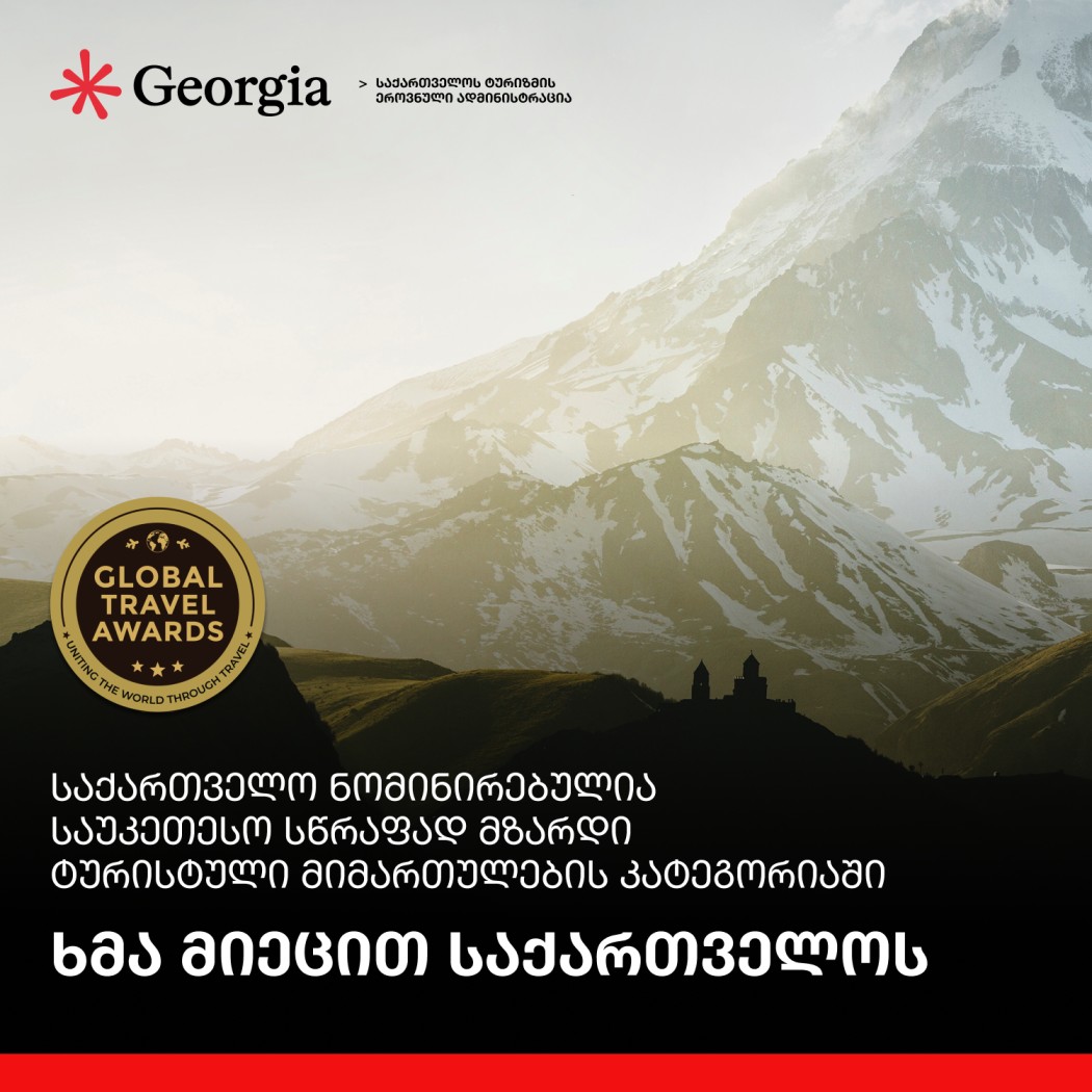 საერთაშორისო ტურისტულ პლატოფორმაზე Global Travel Awards საქართველო 2026 წლის საუკეთესო განვითარებადი ტურისტული მიმართულების „Best Emerging Travel Destination“ კატეგორიაშია წარდგენილი.