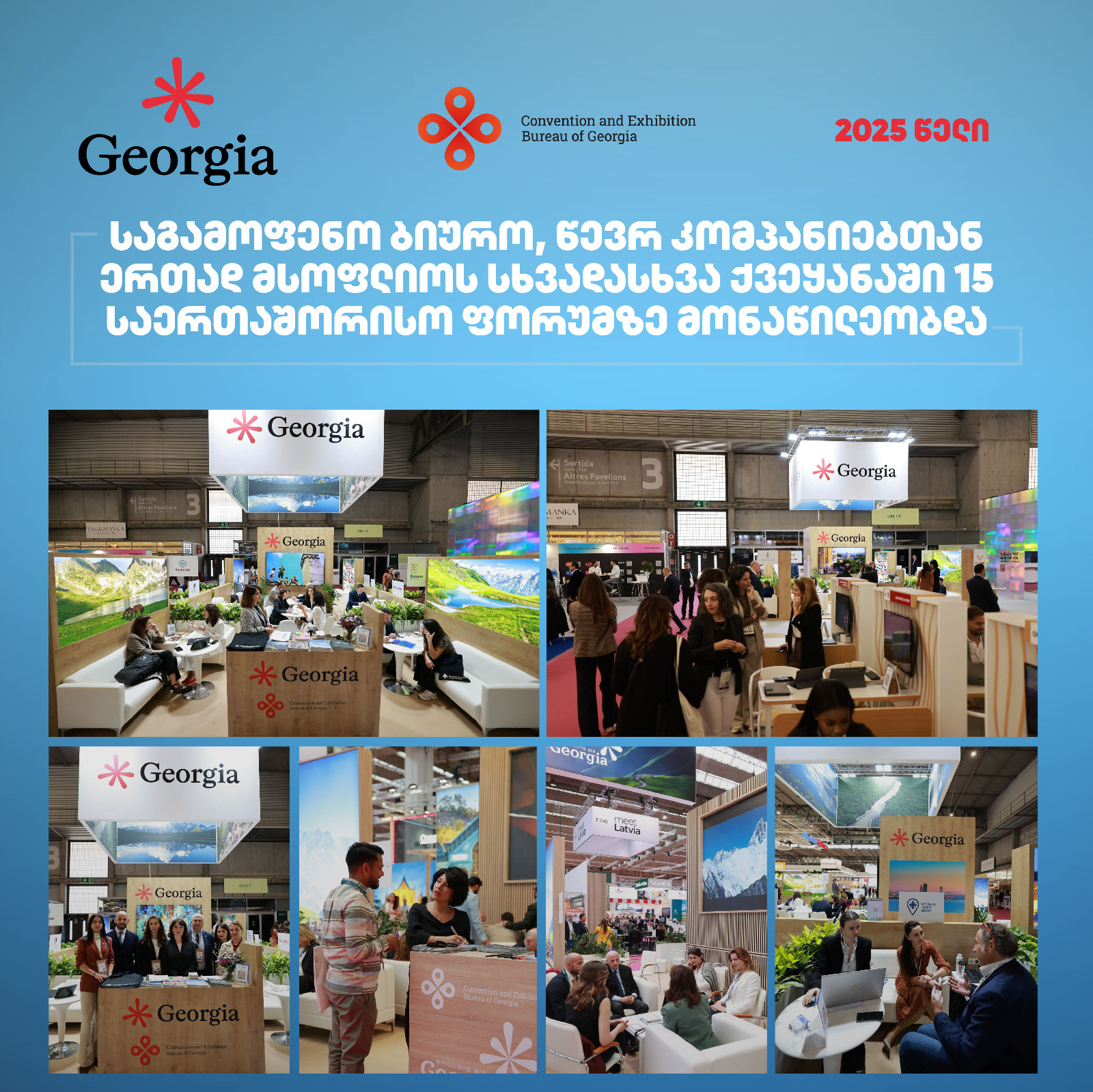 წელს ტურიზმის ეროვნული ადმინისტრაციის საკონვენციო და საგამოფენო ბიურო, წევრ კომპანიებთან ერთად წარდგენილი იყო 15 საერთაშორისო ფორუზე მსოფლიოს სხვადასხვა ქვეყანაში, მათ შორის: იტალიაში, გერმანიაში, საფრანგეთში, არაბთა გაერთიანებულ საამიროებში, თურქეთში და ა.შ.