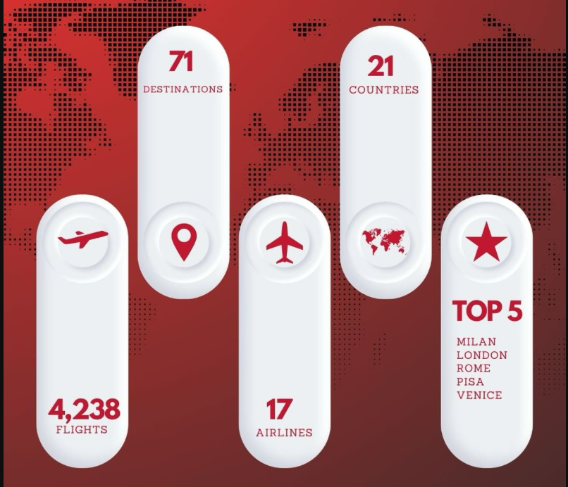 იანვრის განმავლობაში ტირანის აეროპორტიდან ფრენები 21 ქვეყნის 71 სხვადასხვა მიმართულებით სრულდებოდა. მრავალფეროვან საავიაციო ქსელს 17 ავიაკომპანია ემსახურებოდა, რაც მოგზაურებს არჩევანის ფართო შესაძლებლობას აძლევდა. მიუხედავად სეზონურობისა, აეროპორტმა შეძლო კონსოლიდირებული და დივერსიფიცირებული ქსელის შენარჩუნება, რაც საერთაშორისო კავშირების გაძლიერებაზე მიუთითებს.