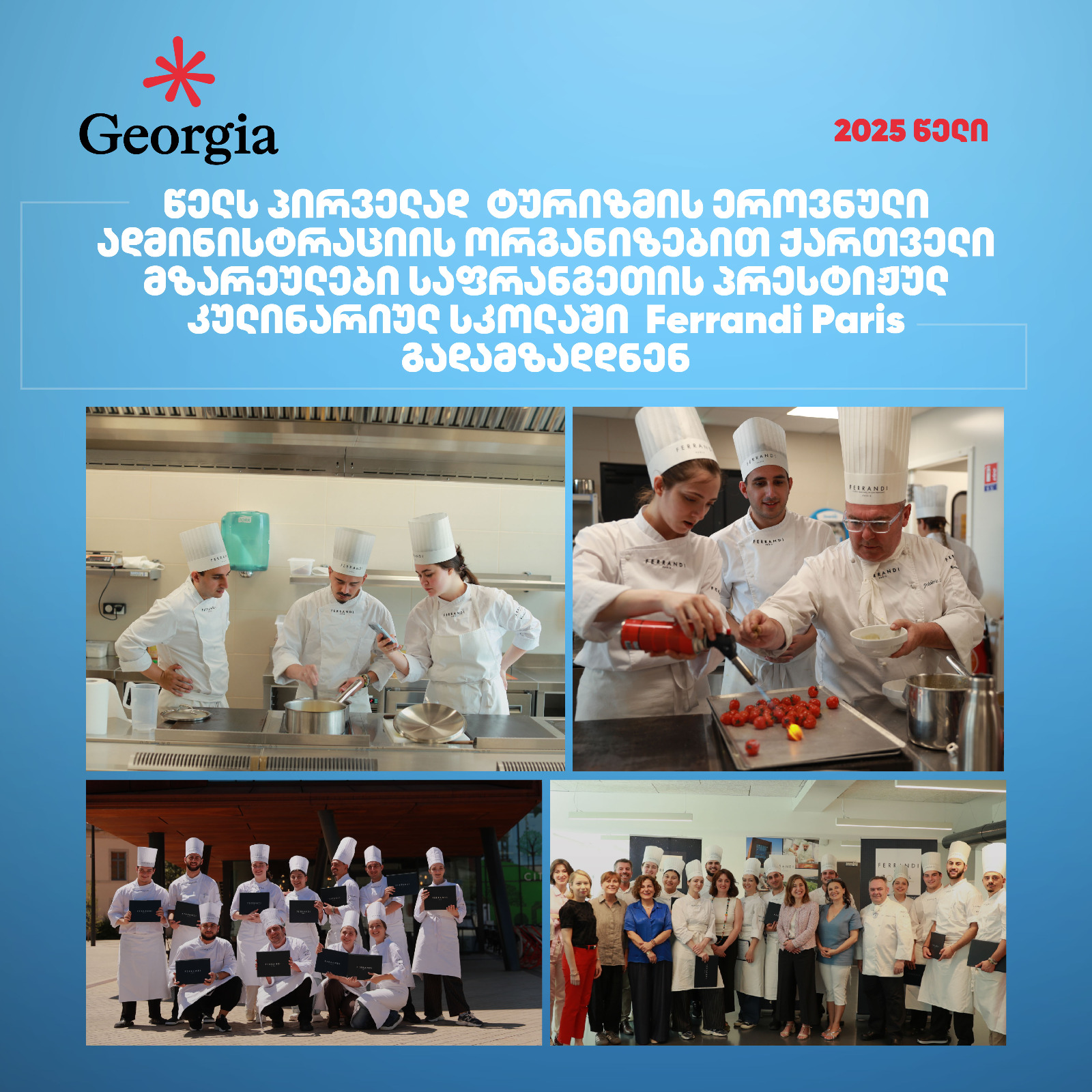 ადმინისტრაციის ორგანიზებით, ქართველმა მზარეულებმა საფრანგეთში, დიჟონში, მსოფლიოს ერთ-ერთ ყველაზე პრესტიჟულ კულინარიულ სასწავლებელში Ferrandi Paris გადამზადების კურსი გაიარეს.